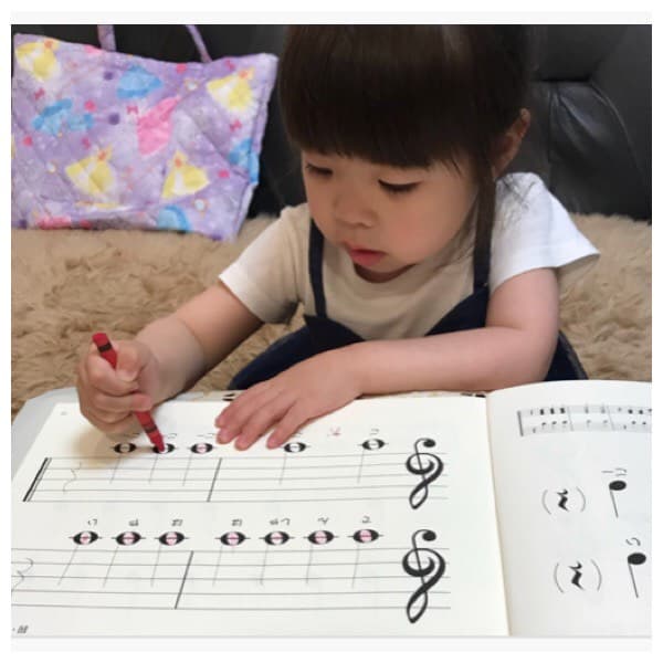 ・2歳から未就学児の方は小学生からのピアノコースの内容に、前頭前野を鍛えて頭の良い子を育てる育脳メソッドをプラスしてレッスンをしています。